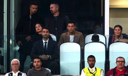 Tuy xuất hiện trên khán đài cổ vũ cho các đồng đội tại Juventus nhưng C.Ronaldo lại không mấy vui vẻ mà ngược lại trông chàng cầu thủ siêu sao hết sức đăm chiêu, nghiêm túc.