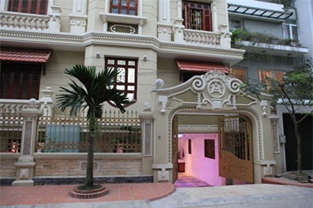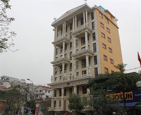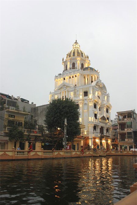 Tòa lâu đài siêu sang này tọa lạc trong một con ngõ nhỏ trên phố Hoàng Quốc Việt (Cầu Giấy - Hà Nội). Nằm trên khu đất có diện tích khoảng 400m2, cao 5 tầng, được thiết kết như những lâu đài cổ ở nước ngoài rất nguy nga, lộng lẫy. Dấu ấn của tòa lâu đài này là có 6 con gà dát vàng đặt trên nóc nhà, các họa tiết của cửa sổ cũng được tô điểm bằng những lá vàng mỏng dát vào đó.