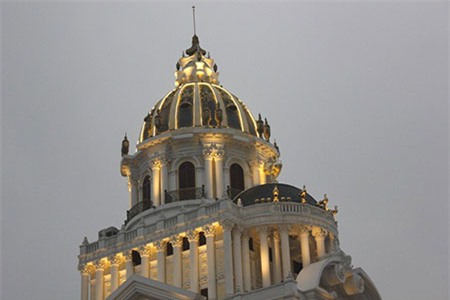 Dấu ấn của tòa lâu đài này là có 6 con gà dát vàng đặt trên nóc nhà có giá vài tỷ đồng. |