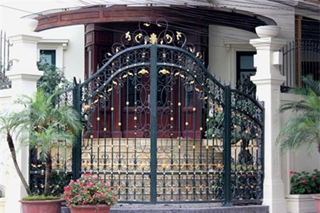Những cánh cửa tại tòa biệt thự đều được mạ vàng với những đường nét mềm mại. |