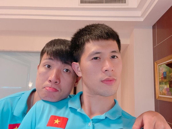 Chưa hết, khi Đình Trọng, Minh Vương, Văn Toàn và thành viên ban huấn luyện đang chăm chú nhìn vào ống kính để tạo dáng, Tư Dũng lại khoác vai, chu mỏ hôn cổ Trọng Ỉn khiến nhiều người chú ý. Tình anh em thắm thiết quá thể cơ!