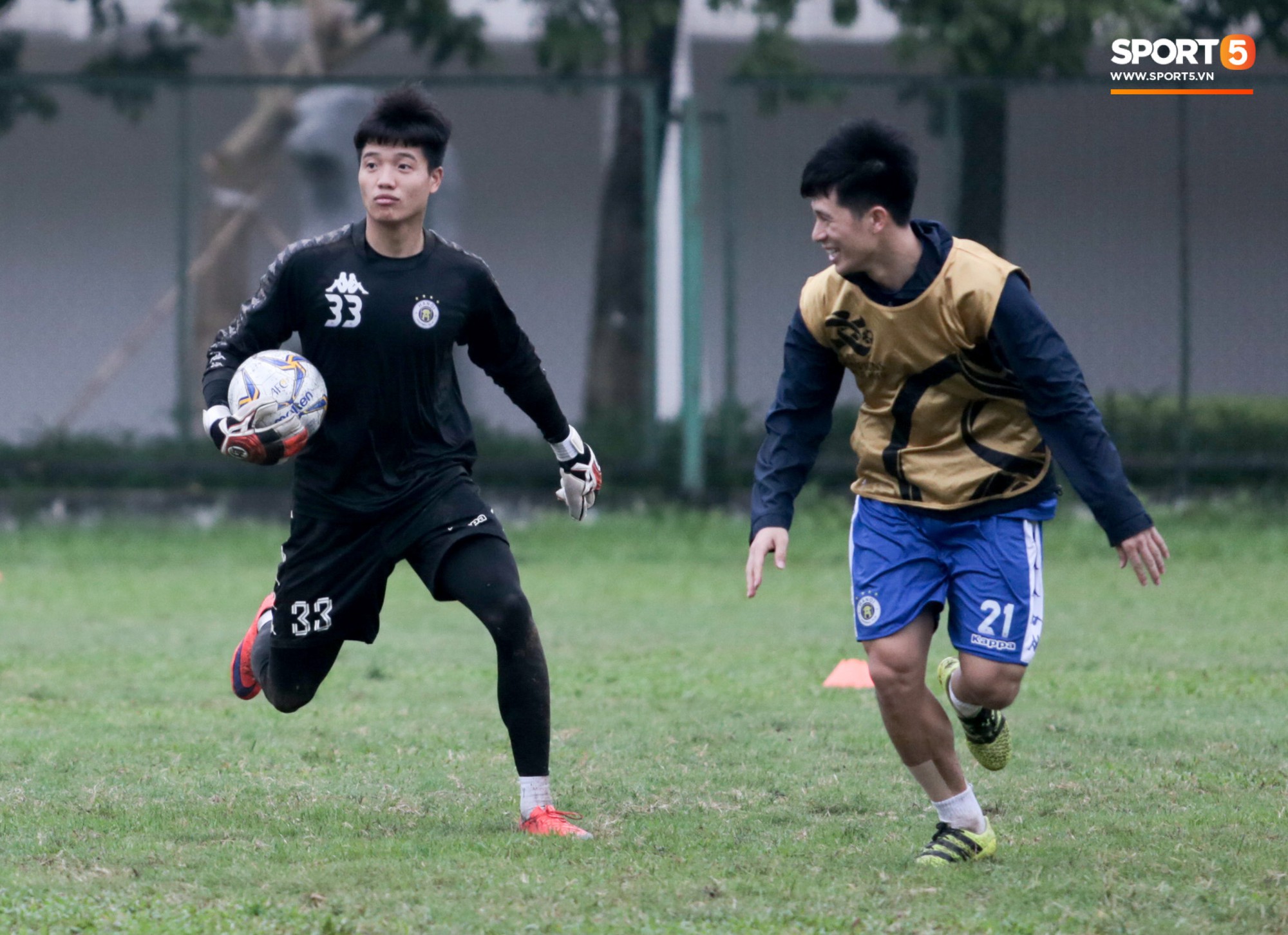 Trần Đình Trọng có buổi tập cùng Hà Nội FC vào chiều 1/4 tại sân bóng Trung tâm huấn luyện thể thao Quốc gia Nhổn.