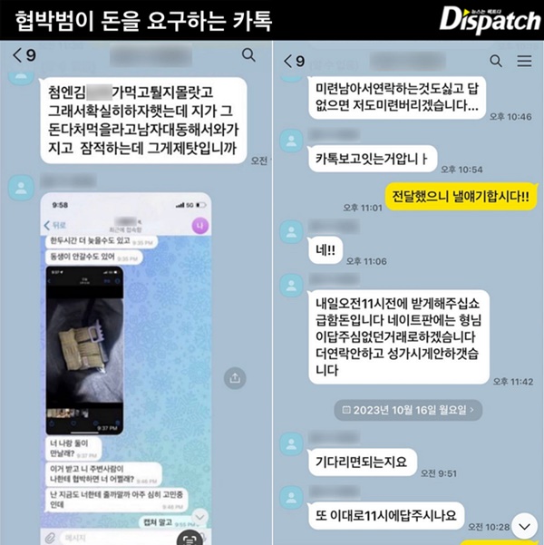 Đoạn tin nhắn giữa nghệ sĩ giàu có Jeon và Kim được Dispatch công bố: "Cô định đe doạ để cho tôi vào tù đúng không? Tôi sẽ tự đầu thú vậy"