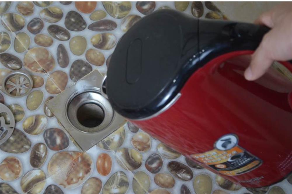 Thêm một bình nước nóng vào cống để loại bỏ hoàn toàn các vết bẩn bám trên thành đường ống