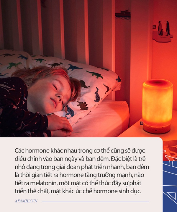 Bản thân cơ thể con người giống như một cỗ máy, hoạt động vào ban ngày và nghỉ ngơi vào ban đêm. Các hormone khác nhau trong cơ thể cũng sẽ được điều chỉnh vào ban ngày và ban đêm. Đặc biệt là trẻ nhỏ đang trong giai đoạn phát triển thể chất nhanh, ban đêm là thời điểm tiết ra hormone tăng trưởng mạnh, não tiết ra melatonin, một mặt có thể thúc đẩy sự phát triển thể chất, mặt khác ức chế hormone sinh dục.