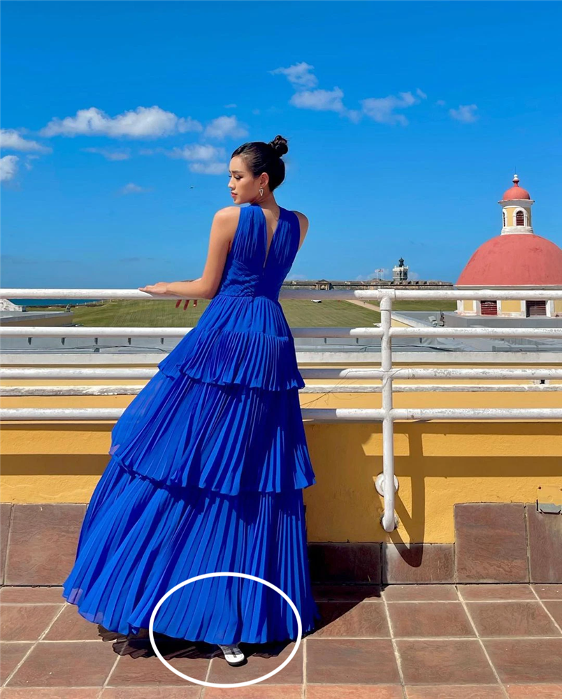 Nhưng nói đi cũng phải nói lại, Đỗ Hà xỏ chân trong đôi dép lê thoải mái ấy cũng có lý do cả. Lịch trình của Miss World 2021 dày đặc nên Đỗ Thị Hà cùng các thí sinh phải di chuyển liên tục trên những đôi cao gót lênh khênh. Kết quả, chân của nàng Hậu bị phồng rộp, nhìn thôi cũng thấy đau rát rồi.