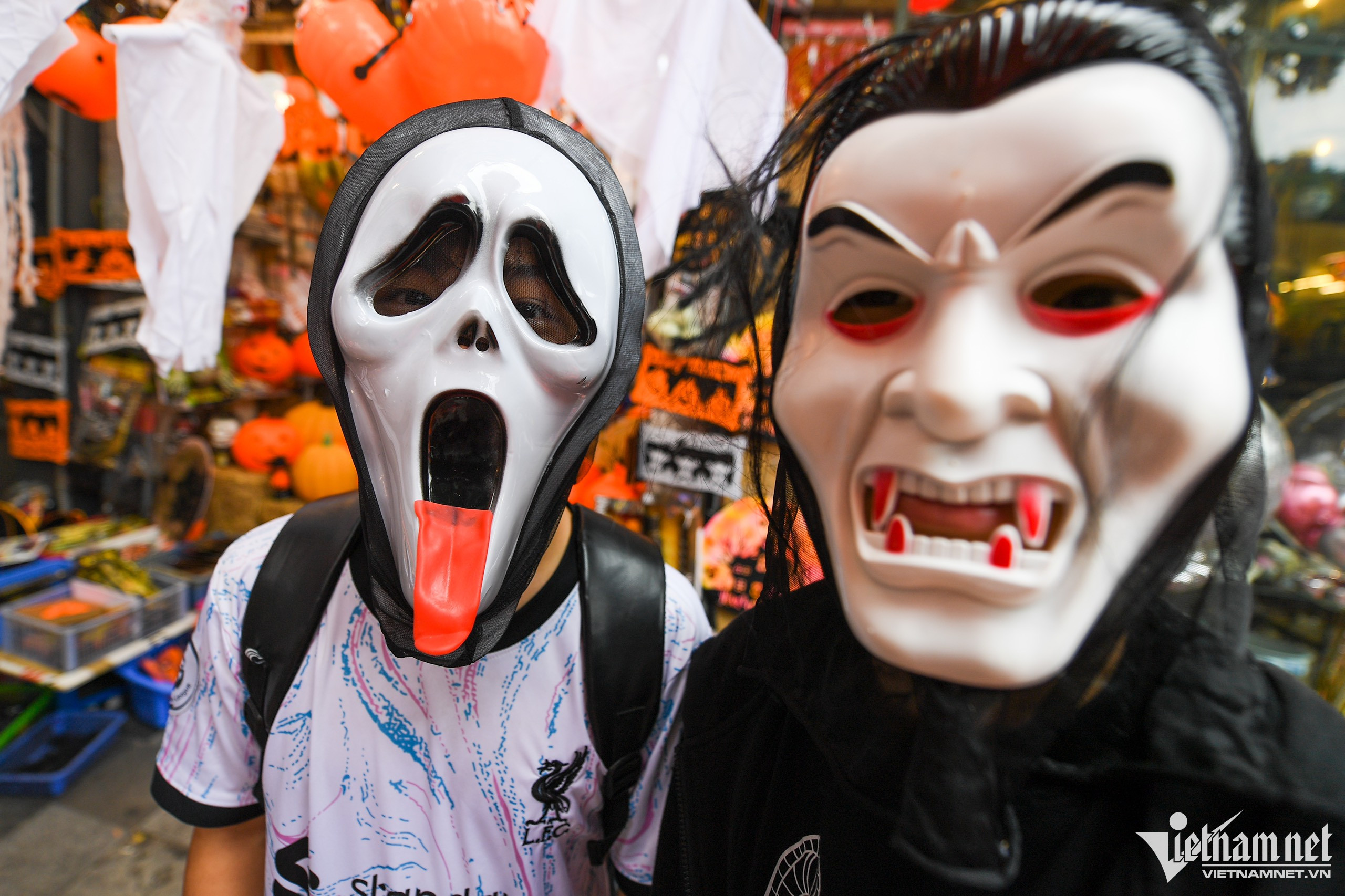 Khôi (bên trái) và bạn mua 2 chiếc mặt nạ với giá 50.000 đồng để tham dự ngày hội Halloween sắp tới do trường học của hai bạn này tổ chức.