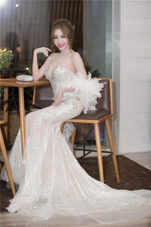 Elly Trần chuộng các thiết kế đuôi cá ôm sát trễ nải chất liệu voan mỏng manh.