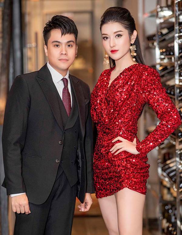 Á hậu Huyền My diện bộ váy màu đỏ rực lấp lánh, khoe đôi chân dài gợi cảm.