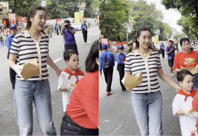 Cuối tháng 8, Đỗ Mỹ Linh xuất hiện trên đường phố phát đồ miễn phí cho bà con đi xem sơ duyệt diễu binh, diễu hành mừng đại lễ 80 năm Cách mạng tháng 8 thành công và Quốc khánh 2/9. Nàng dâu hào môn còn dẫn theo con gái Tuệ An cùng các cháu, tươi cười phát đồ ăn, đồ uống cho người dân.