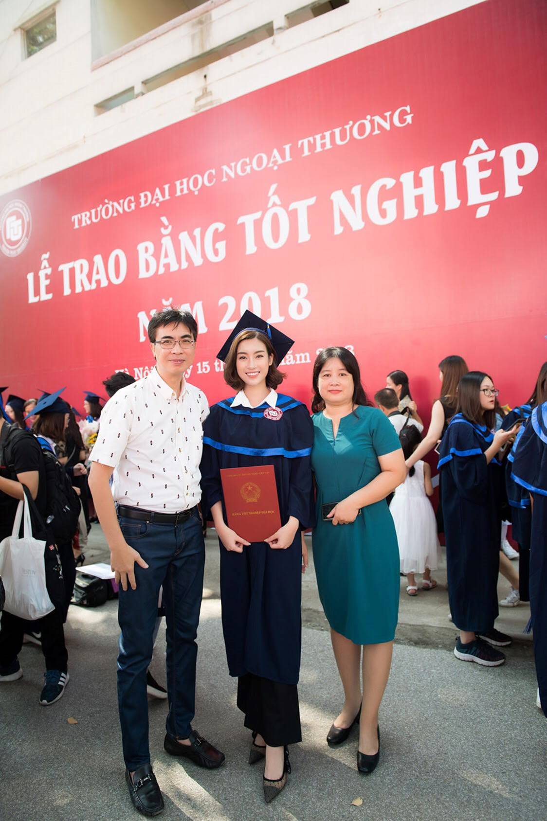 Bố mẹ của hoa hậu cũng có mặt trong ngày cô tốt nghiệp. Từ khi đăng quang, bố mẹ của Đỗ Mỹ Linh luôn đồng hành cùng con gái trong những sự kiện lớn nhỏ.