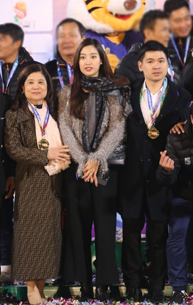 Mới đây, Đỗ Mỹ Linh xuất hiện trong một sự kiện gây chú ý. Được biết, người đẹp xuất hiện cùng mẹ chồng để cổ vũ ông xã - doanh nhân Đỗ Vinh Quang và anh chồng - doanh nhân Đỗ Quang Vinh với tư cách đại diện nhà tài trợ của một giải bóng đá.