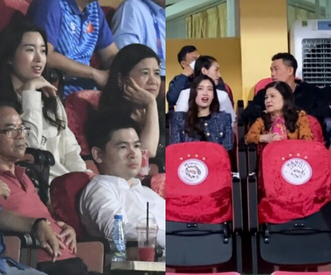 Trên hàng ghế khách mời, hoa hậu thanh lịch trong thiết kế màu đen cổ bẻ. Chẳng cần trang điểm cầu kì, Đỗ Mỹ Linh vẫn tỏa sáng khí chất dâu hào môn. Trong khi đó, mẹ chồng nàng hậu ngồi hàng ghế sau. Bà Thanh Hòa lựa chọn trang phục váy suông thoải mái với họa tiết thêu hoa trước ngực. Bức ảnh cả hai chung khung hình gây sốt.
