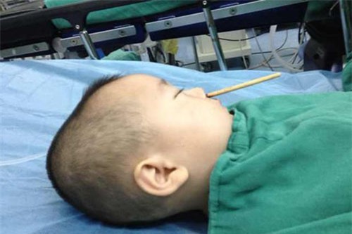 Kết quả chụp CT và khám xét sơ bộ cho thấy chiếc đũa đêm vào khoang miệng của em bé khoảng 2cm và mắc kẹt lại. Tuy chiếc đũa may mắn chưa cắm vào não nhưng đã chạm tới hộp sọ. May mắn gia đình em bé không rút chiếc đũa ra mà đưa con nguyên trạng tới bệnh viện bởi nếu rút chiếc đũa ra, rất có thể em bé sẽ bị mất máu dẫn đến tử vong.