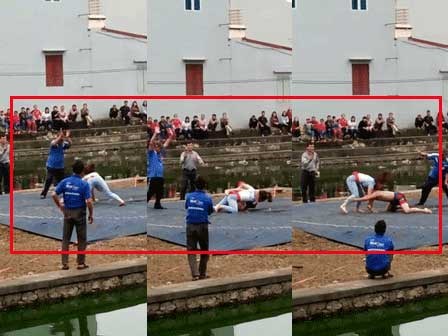 Clip: Cô gái trẻ quật ngã nam đô vật trên sới vật hội làng Bắc Ninh trong tiếng hò reo của nhiều người