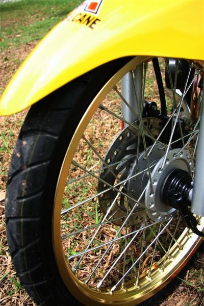 ấn tượng. Phuộc xe bánh trước gần như dựng đứng vừa tạo nét khác lạ vừa