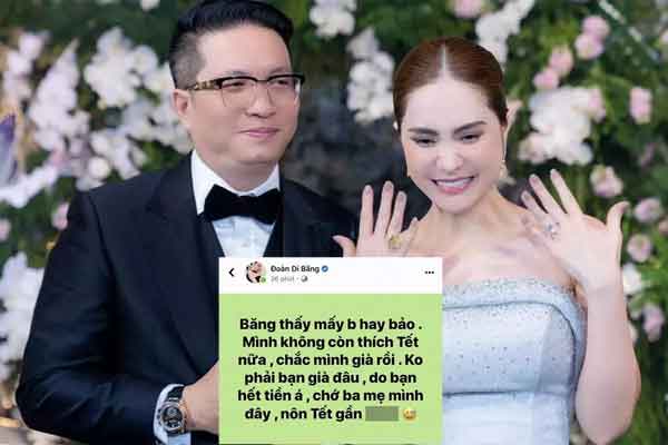 Cách đây ít ngày, Đoàn Di Băng cũng từng dính thị phi. Đăng tải status: "Băng thấy mấy bạn hay bảo mình không còn thích tết nữa, chắc mình già rồi. Không phải bạn già đâu, do bạn hết tiền đấy. Chứ ba mẹ mình đây, đang nôn tết lắm", cô bị nghi khinh người nghèo.
