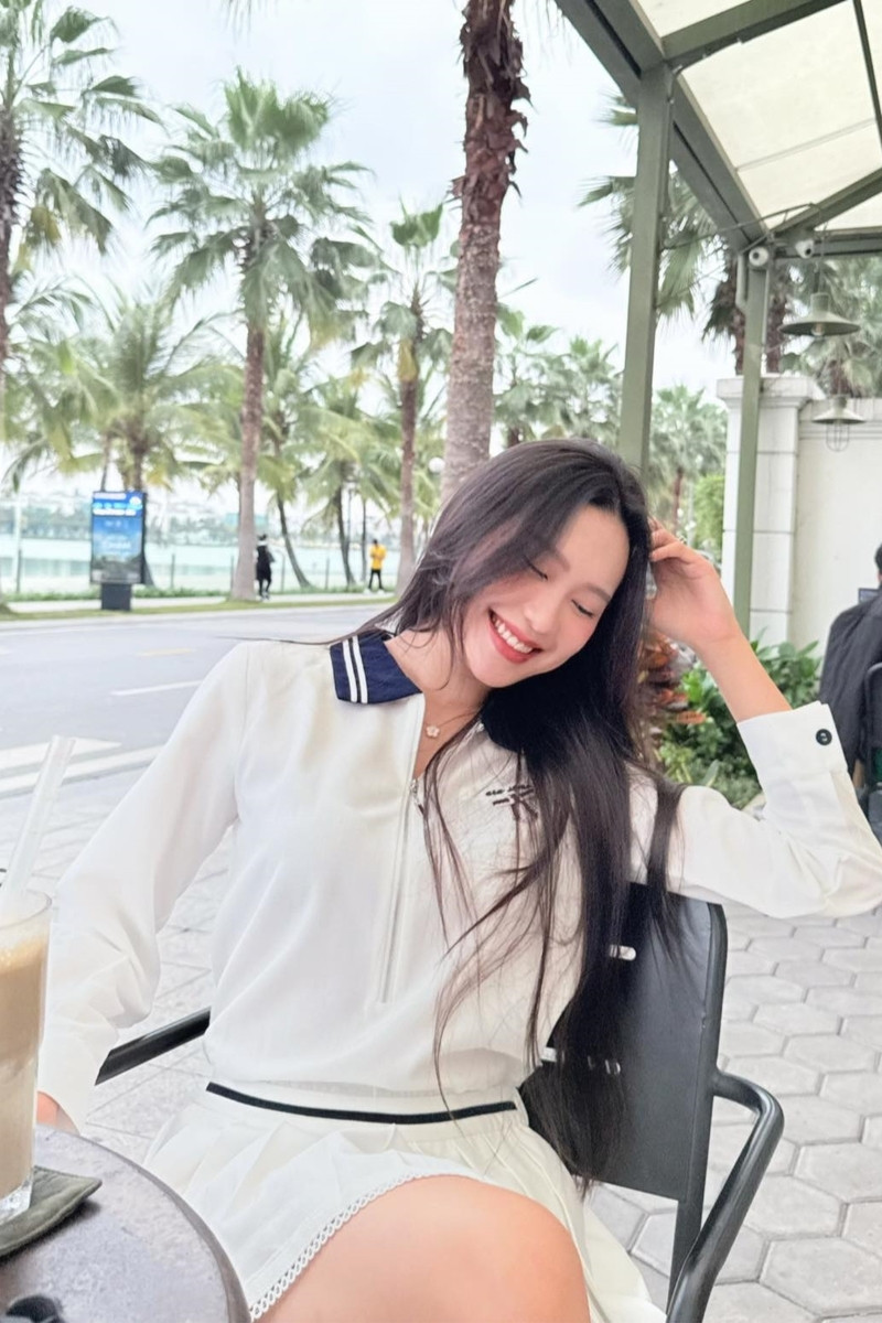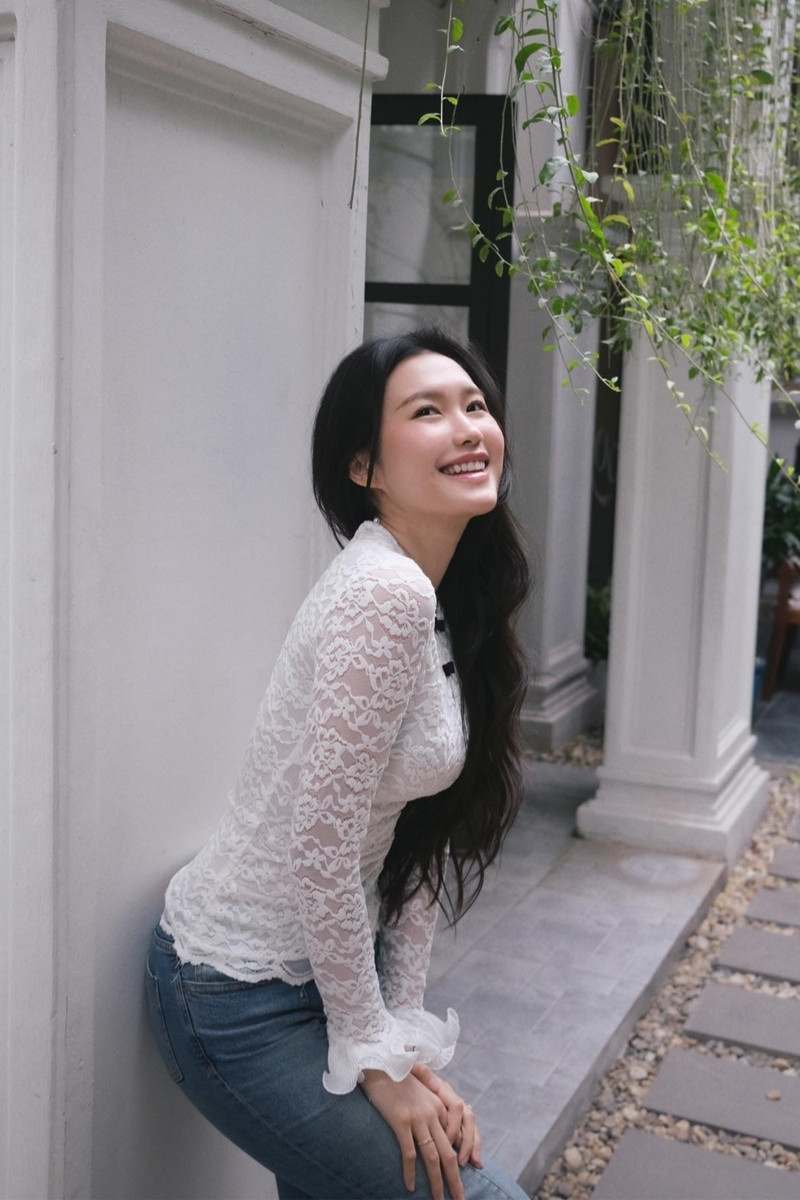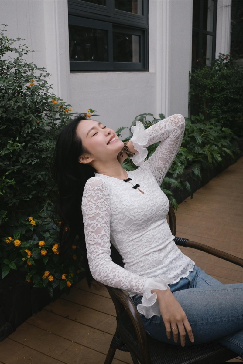 Doãn Hải My không chỉ gây ấn tượng bởi vẻ đẹp dịu dàng mà còn bởi phong cách thời trang tinh tế và thanh lịch. Gu thẩm mỹ của cô nhẹ nhàng nhưng không kém phần sang trọng. Hải My đặc biệt yêu thích những tông màu trắng, be và pastel. Điển hình là chiếc áo ren trắng tinh khôi phối cùng quần jeans xanh, tạo nên vẻ ngoài vừa nữ tính vừa hiện đại.