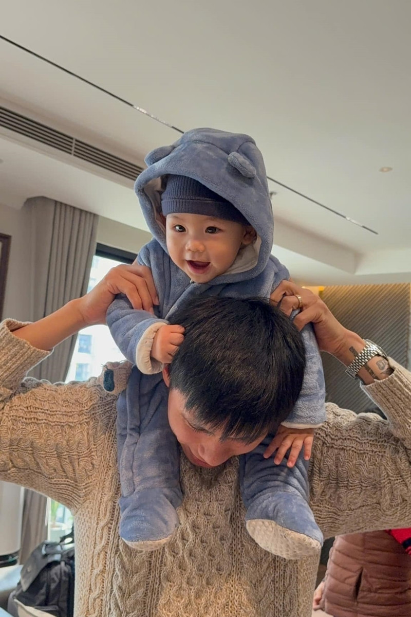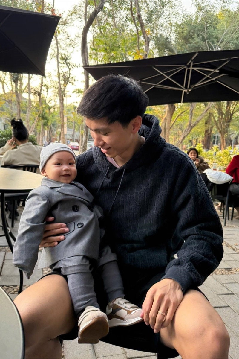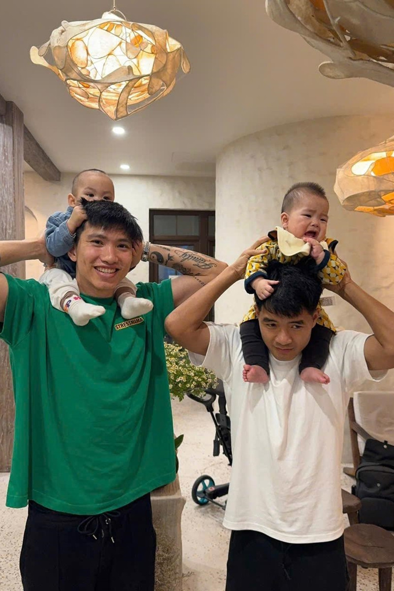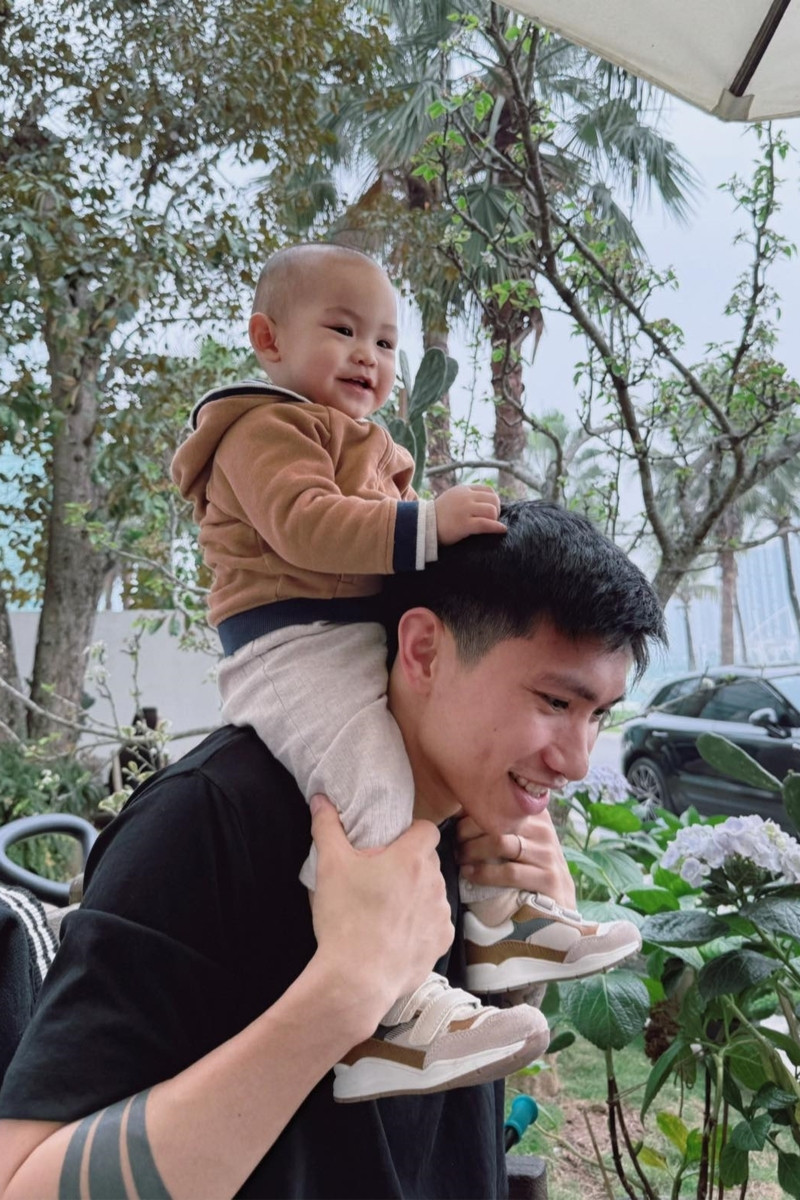 Đoàn Văn Hậu cũng luôn thể hiện là một người bố yêu thương con. Anh thường xuyên cõng con trên vai, bế con trong lòng và dành thời gian vui chơi cùng con dù lịch thi đấu bận rộn.