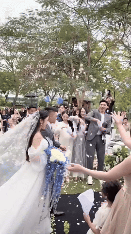 - Đoàn Văn Hậu vui vẻ tung hoa cho Quang Hải và Chu Thanh Huyền