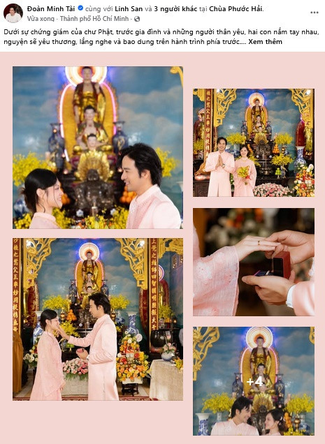 Mới đây, Đoàn Minh Tài chia sẻ loạt ảnh mới trên trang cá nhân gây chú ý. Theo đó, nam diễn viên đăng tải khoảnh khắc cùng bà xã làm Lễ Hằng thuận ở chùa.