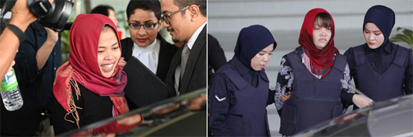 Đoàn Thị Hương, công dân Việt Nam, và Siti Aisyah, công dân Indonesia, đã gần như luôn xuất hiện cùng nhau trên bục dành cho bị cáo ở tòa án. Ngay từ đầu, họ được cho là sẽ có chung số phận, dù bản án thế nào.