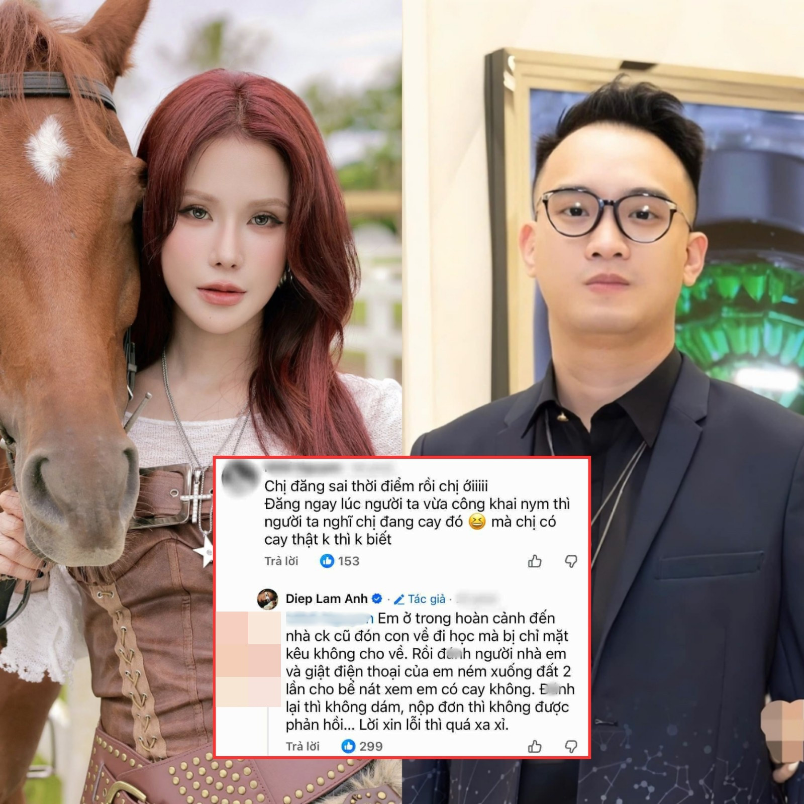 Phía dưới bài đăng, Diệp Lâm Anh còn phản hồi thêm khi bị cho là "cay cú" chồng cũ và đăng sai thời điểm: "Em ở trong hoàn cảnh đến nhà chồng cũ đón con về đi học mà bị chỉ mặt kêu không cho về. Rồi đánh người nhà em và giật điện thoại của em ném xuống đất 2 lần cho bể nát xem em có cay không. Đánh lại thì không dám, nộp đơn thì không được phản hồi… Lời xin lỗi thì quá xa xỉ."