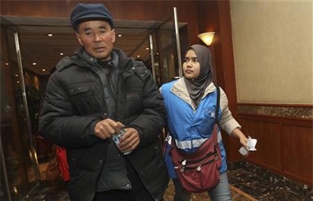 Nhân viên của hãng Malaysia Airlines chăm sóc cho thân nhân của hành khách gặp nạn trong khách sạn ở Bắc Kinh hôm 9/3. Ảnh: Reuters |