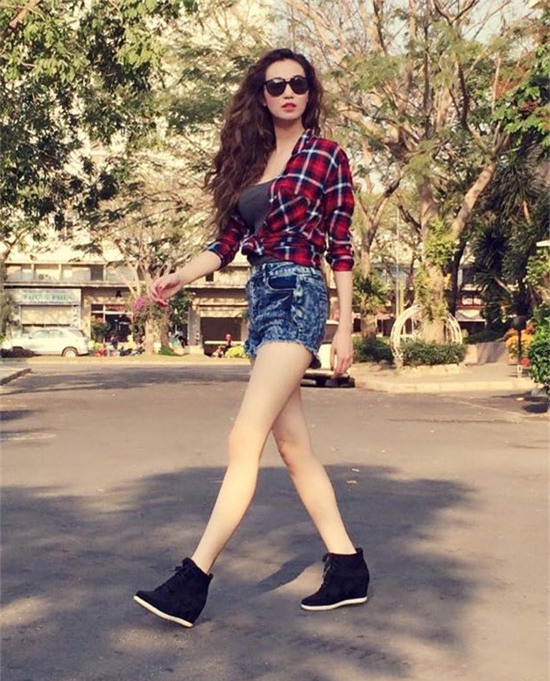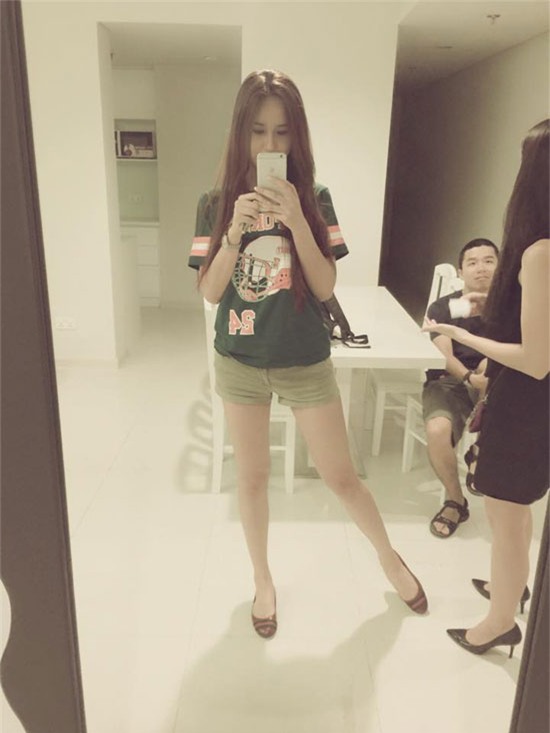 Phương Linh cũng không chối từ dáng quần giúp cô ăn gian chiều cao.