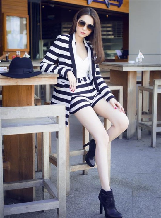 Để tạo nét thanh lịch và sang trọng khi diện short, Ngọc Trinh