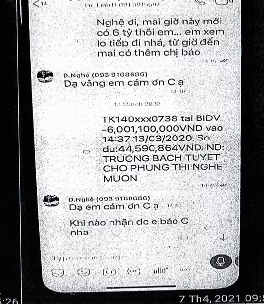 Nghe xong, bà Tuyết chuyển thêm 90 tỉ đồng.