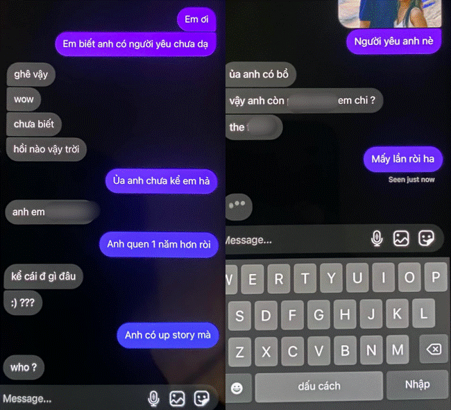 "2 tháng gần đây mình phát hiện những hành động giấu giếm của A. Suốt 1 năm 3 tháng quen nhau mình không hề quản A. làm gì, đi chơi với ai. A. báo đi với bạn mình cũng tin vậy và không kiểm tra điện thoại. Nhưng không hiểu linh tính thế nào chiều 14/3 mình đã mở điện thoại A. xem tin nhắn Instagram. Chỉ cần mở đến nick thứ 2 trong list các nick đang nhắn tin thôi là lòi ra tất cả tin nhắn rủ đi chơi, đón đưa, bạn nữ kia gửi nhiều ảnh sexy khoe cơ thể.