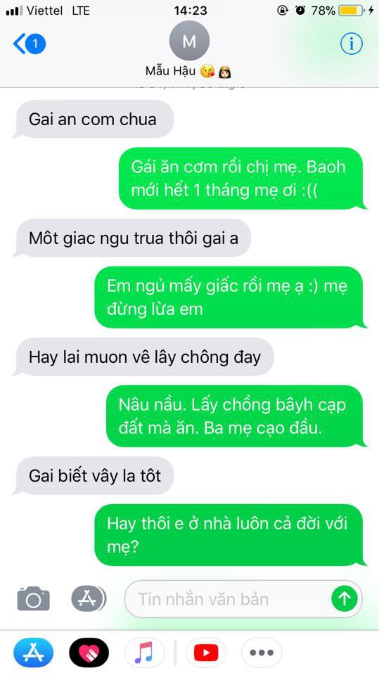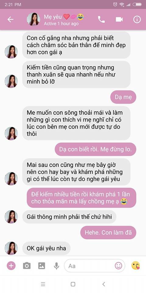 Không chỉ dừng lại ở đó, nhiều người còn chia sẻ những đoạn trò chuyện hay lời nhắn của mẹ dành cho con.