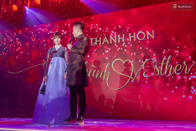 Đôi giày phải được độn tới 15cm của chú rể Trấn Thành khiến cô dâu xinh đẹp Hari phải kiễng chân lên mới có thể ôm chồng mình