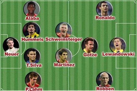 - Bastian Schweinsteiger (Bayern Munich): Chưa có mùa giải nào Schweinsteiger thể hiện được vai trò rõ rệt như mùa giải năm nay. Ngoài khả năng thu hồi bóng, tiền vệ người Đức còn trực tiếp ghi 2 bàn thắng và có tới 4 đường kiến tạo thành bàn.
