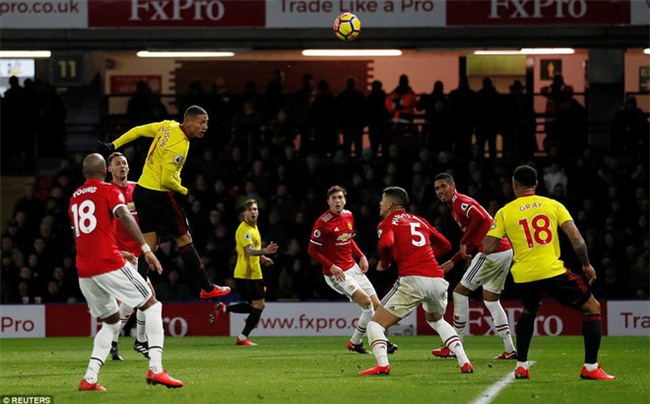 Một phút sau, đến lượt Marcos Rojo trở thành tội đồ ở ngay trận đầu trở lại. Sau pha lắc người đi bóng của Troy Deeney, hậu vệ người Argentina ra chân thực hiện một pha phạm lỗi từ phía sau trong vòng cấm đội nhà. Trọng tài chỉ tay vào chấm phạt đền. Và ở đó, Deeney dễ dàng đánh lừa David de Gea ghi bàn.