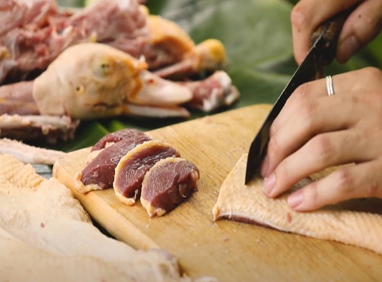 - Dùng tay ấn vào thịt đùi và lườn nếu nhão và phồng lên thì ngan đã bị bơm nước để tăng cân nặng.