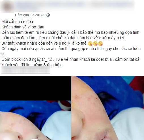 “Môi cắt nhà em đó. Khách định về vì sợ đau, đến lúc tiêm tê, êm ru kêu chẳng đau gì cả. Rồi bảo thế mà bao nhiêu người dọa tinh thần em bảo làm đau lắm, làm em nhát chết không dám làm, tí em về em xử mấy bà ý. Sự thật khách nhà em đó, đến với em không gì là không thể”.