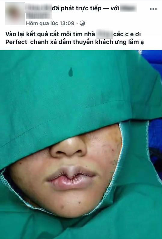 Có điều, việc làm cho đôi môi căng mọng này tưởng như đơn giản bằng phương pháp cắt hoặc tiêm cũng có thể xảy ra những sự vụ bi hài như thường. Không bàn đến trình độ chuyên môn của người thực hiện bởi chuyện nhà người ta mình không rõ cho lắm, chỉ bàn đến một trong những sự vụ bi hài liên quan đến việc làm đẹp đôi môi như trên. Mới đây, trên một trang cá nhân của một cô nàng được cho là hay làm đẹp cho chị em có đăng đàn khoe một vài bức ảnh của khách sau khi làm môi tại nhà mình xong với nội dung: