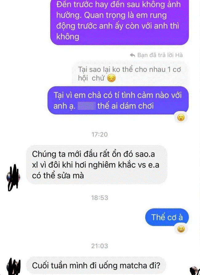Cô gái này đương nhiên phản đối quyết liệt, thậm chí nói thẳng: "Tại vì em chả có tí tình cảm nào với anh. Hãm thế ai dám chơi".