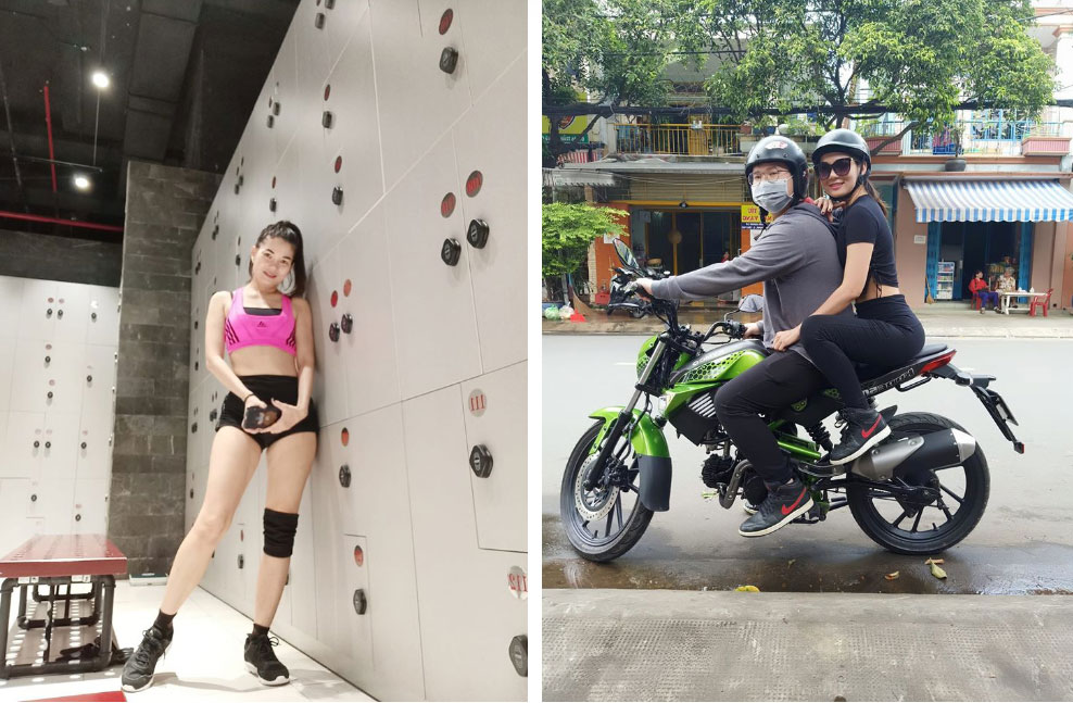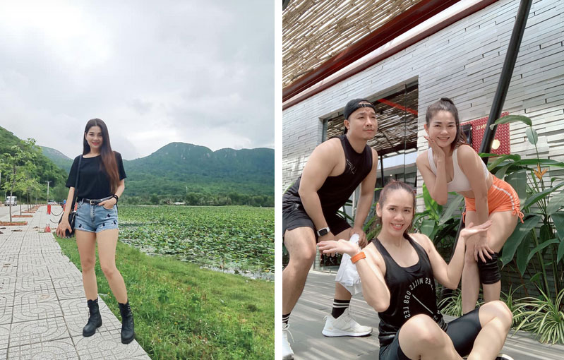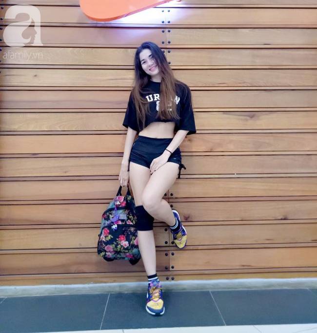 Hiện tại, mình cao 1m6 nặng 48 kg và có số đo 85-60-95. Mình mới mập lên chứ bình thường eo chỉ 56cm. Mình là thần tượng ở phòng tập về độ chăm chỉ và lúc nào cũng vui vẻ. Mình luôn quan niệm 'Chỉ mê tập chứ không có mê trai".