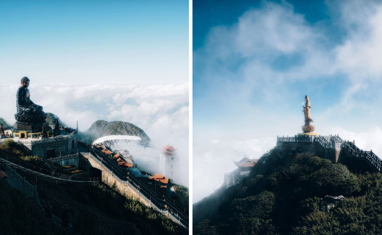 Để chiêm ngưỡng rõ cảnh đẹp hiếm có khó tìm này, mọi người có thể đi cáp treo lên đỉnh Fansipan. Đây là đỉnh núi được xem là biểu tượng của vẻ đẹp thiên nhiên siêu thực tại Việt Nam với độ cao lên tới 3.143 mét. Từ đỉnh núi Fansipan, bạn có thể nhìn ngắm toàn cảnh của Sapa với những thửa ruộng bậc thang xanh ngát, những ngôi làng cổ kính và những dòng sông uốn lượn.