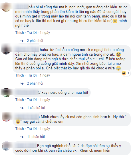 Đặc biệt bất ngờ là dưới phần bình luận, có rất nhiều chị em đã “thú tội” rằng mình cũng y hệt như cô vợ bầu bên trên, tức là khi có bầu sẽ rất ghen và đa nghi.