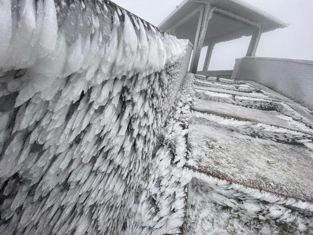Trong đó, đỉnh Mẫu Sơn (Lạng Sơn) xuống thấp nhất với - 0,9 độ C; Tam Đảo (Vĩnh Phúc) 2 độ C; Đồng Văn (Hà Giang) 2,2 độ C; Sa Pa (Lào Cai) 3,7 độ C; Trùng Khánh (Cao Bằng) 3,8 độ C; Mộc Châu (Sơn La) 4,4 độ C.