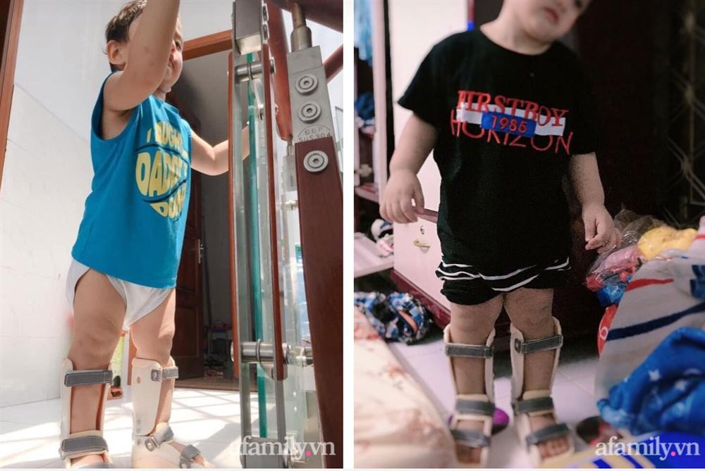 Bác sĩ nói mình về phải cho con tập đi thật nhiều nhưng nhiều lúc mình nhìn con mà cảm thấy bất lực lắm. Con chỉ đứng được khi có giày vật lý trị liệu hỗ trợ, bỏ giày ra là ngã. Con tập đi rất chậm, vừa đi vừa khóc, ngày nào cũng vậy nhìn thương lắm.