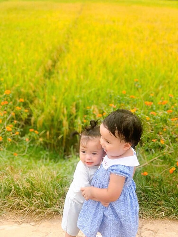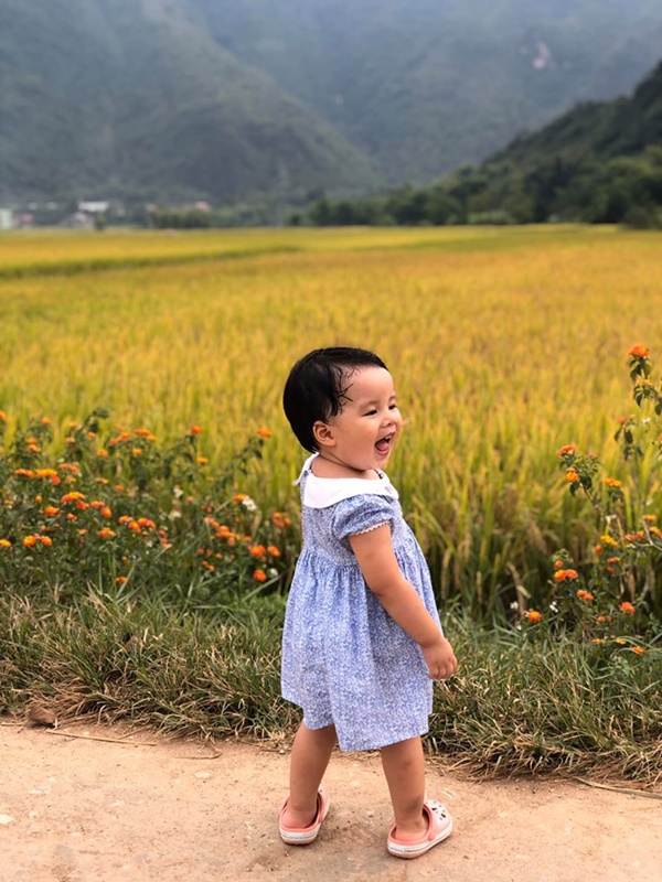 Dù đã bầu bí đến tháng cuối cùng rồi, nhưng Minh Trang trông vẫn rất tươi tắn, năng động, thậm chí bà mẹ trẻ còn vô tư bế các con và cùng chúng chơi đùa. Cả 3 bé Bánh Mì, Daisy và Bơ đều rất hào hứng, hạnh phúc khi được chơi đùa thỏa thích giữa thiên nhiên, tắm suối, nghịch ngợm ngoài đồng lúa, khám phá thiên nhiên xung quanh.