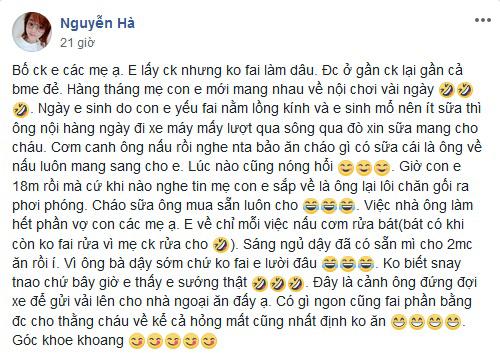 “Bạn thật có phúc khi được gả vào một nhà chồng có người bố tuyệt vời như thế. Đàn ông chịu giúp vợ con việc nhà đã hiếm rồi, ông còn chăm sóc con dâu không khác gì con đẻ, không ngại khó khăn đi xin sữa rồi nấu cả đồ tẩm bổ cho con dâu. Ngưỡng mộ quá!”, bạn trẻ Nhung Chi bình luận.