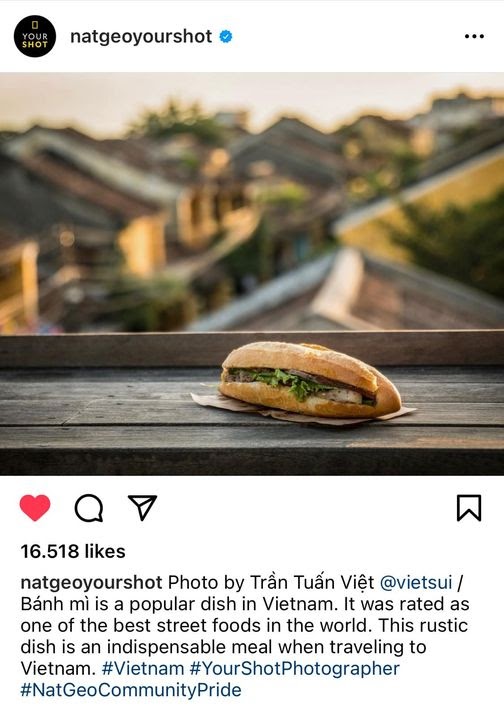 Mới đây, bức ảnh chụp bánh mì Việt Nam trên background là những mái nhà phố cổ Hội An được chụp bởi nhiếp ảnh gia Trần Tuấn Việt một lần nữa dậy sóng trên trang Instagram nổi tiếng thế giới về du lịch. Theo đó, chuyên trang Natgeoyourshot (một trang nổi tiếng thế giới về chia sẻ những bức ảnh đẹp nhất của các vùng miền du lịch) có đến 5,3 triệu người theo dõi đã đăng tải hình ảnh này và ngay lập tức thu hút hơn 16 nghìn lượt thả tim, đồng thời trở thành bức ảnh ẩm thực nhận được nhiều sự quan tâm của cộng đồng quốc tế.