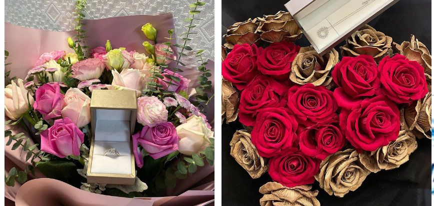 Đương nhiên không thể thiếu trang sức như nhẫn, vòng vèo và hoa tươi trong list quà tặng mà Tiến Dũng dành cho bà xã.