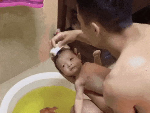 Chiều vợ đã đành, Bùi Tiến Dũng còn cực khéo khoản chăm con. Dù Sushi là con đầu lòng nhưng ông bố trẻ chẳng hề bỡ ngỡ mà vẫn có thể tắm gội cho cô bé vô cùng thành thạo.
